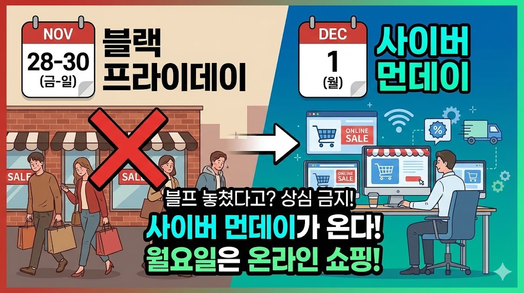 만약 가전제품이나 의류를 직접 보고 사는 게 아니라면, 온라인 할인율이 더 높은 '사이버 먼데이'를 노리는 것도 현명한 전략입니다.
