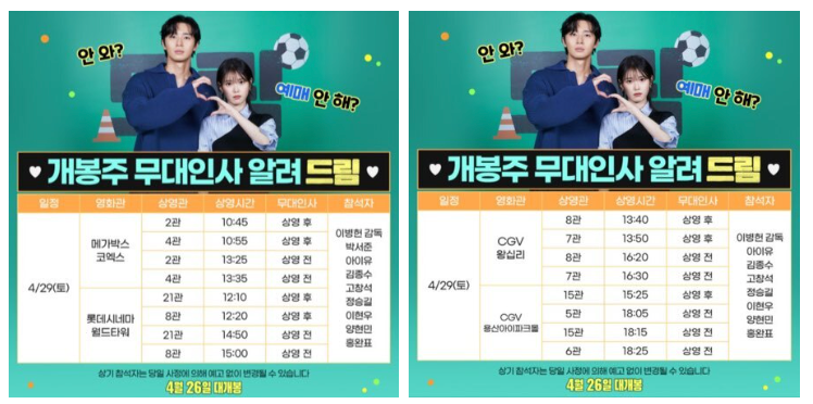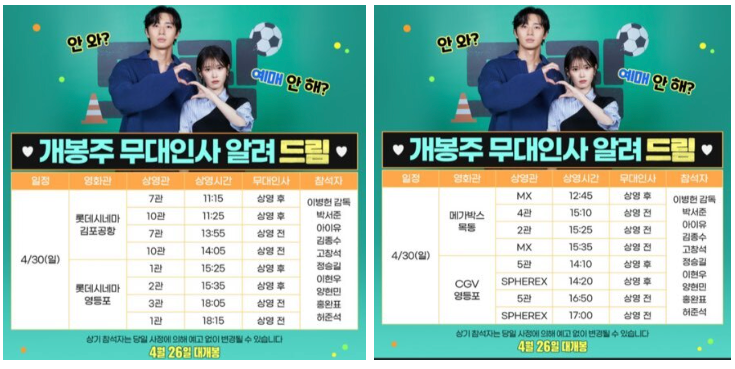4월 26일 무대인사 일정입니다.