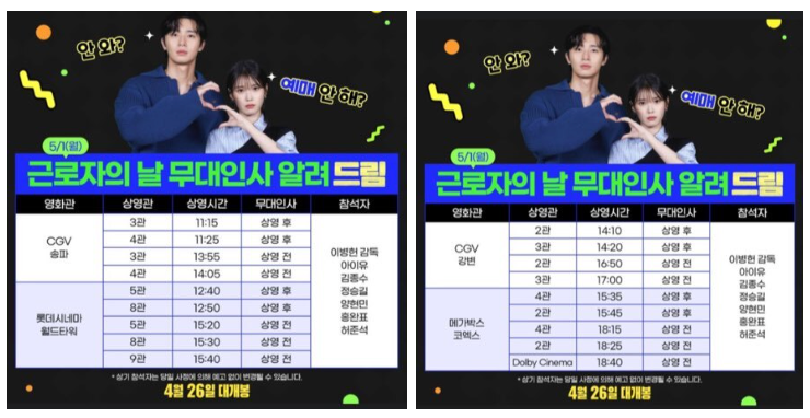 5월 1일 무대인사 일정입니다.