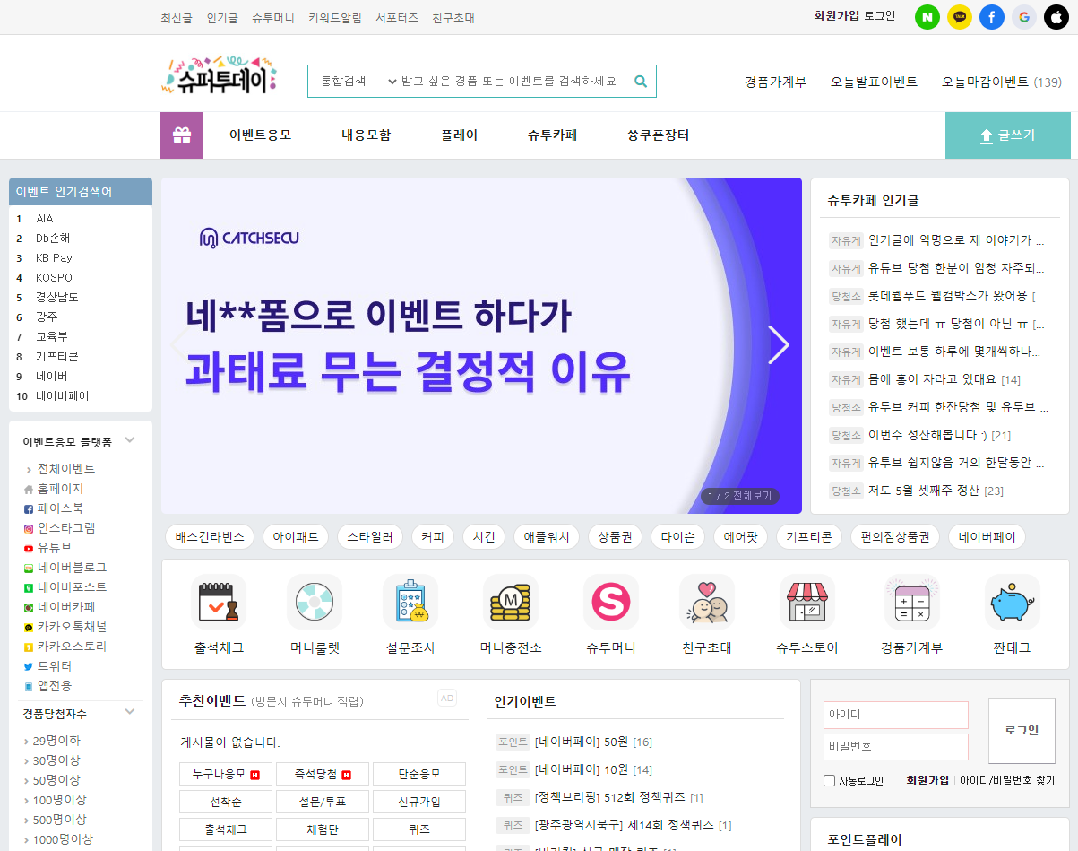 앱테크 슈퍼투데이 어플로 돈 버는 방법과 이벤트 응모 방법 경품 응모 방법에 대해 알아보겠습니다.