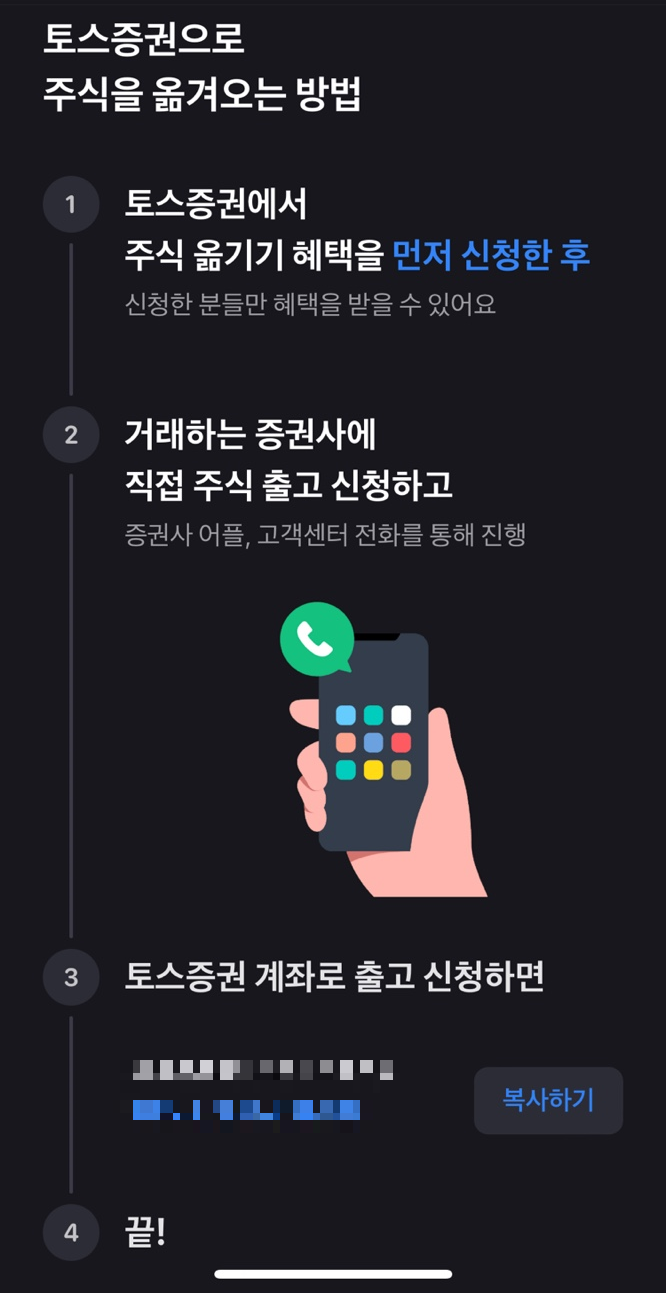 그리고 모자이크가 되어 있지만, 나의 토스증권계좌로 넣어주면 끝!