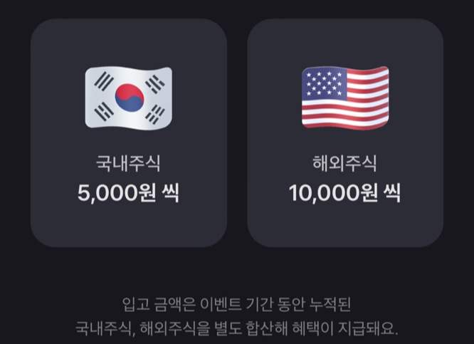 주식 옮기기 이벤트는 국내주식은 1,000만원당 5,000원씩 캐시백, 해외주식은 10,000씩 캐시백을 제공합니다.