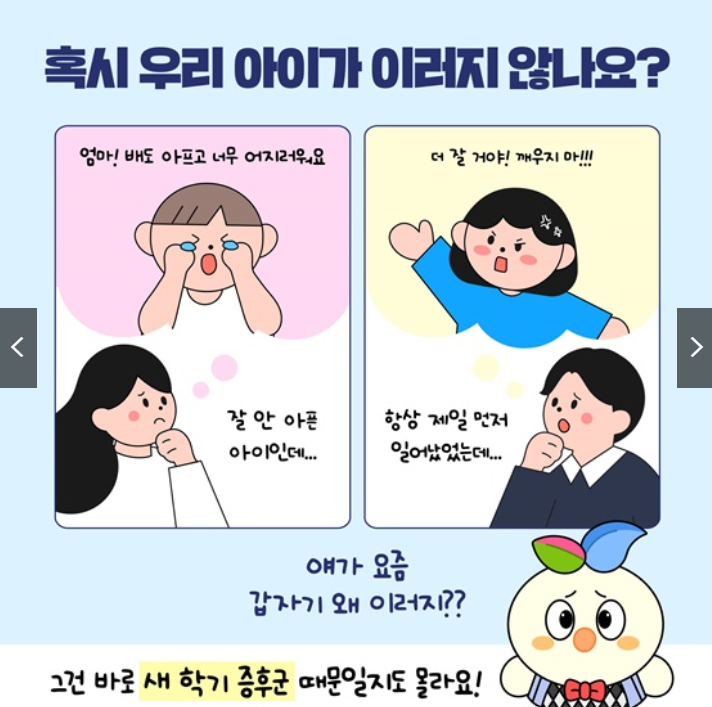 - 이런 증상들이 나타난다면 부모님이 아이의 상태를 잘 살펴보고 적절한 대처가 필요합니다.