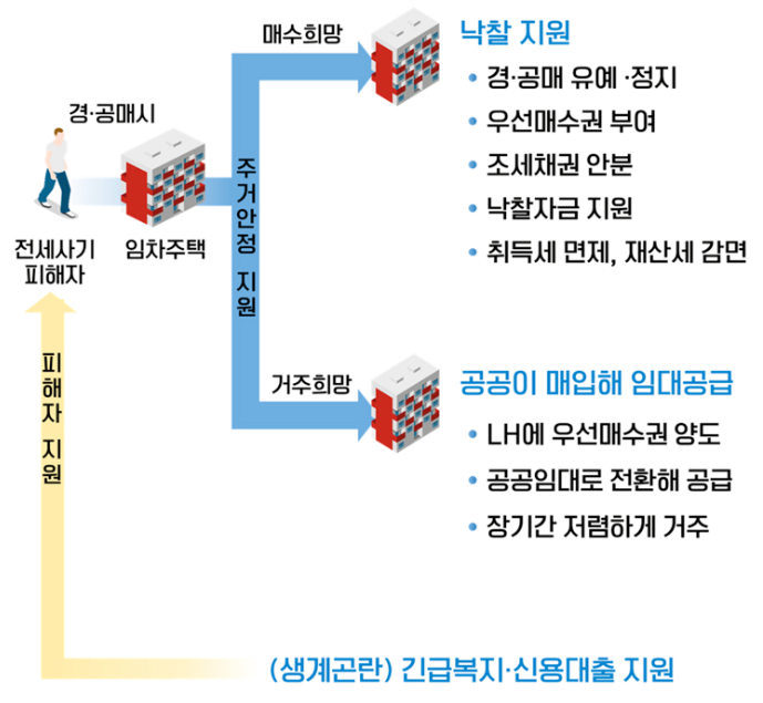 - 전세 사기 피해자들에게 거주 중인 주택의 우선매수권과 LH 공공임대의 우선매입권을 부여합니다 .