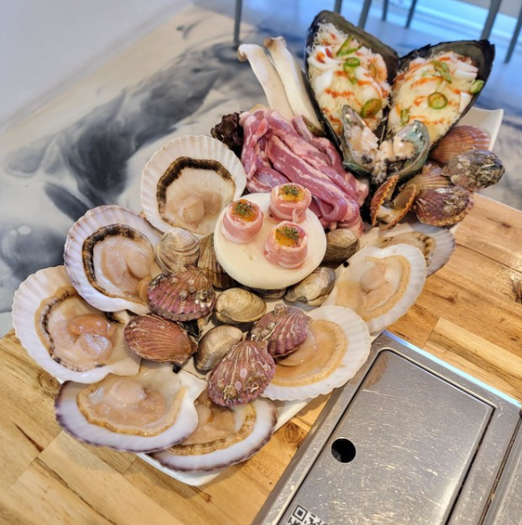 고기랑 조개랑은 강릉 정동진에서 유일하게 삼겹살과 목살등의 육류와 전복, 가리비, 키조개등의 어패류를 동시에 맛볼 수 있는 공간입니다. 깔끔하고 예쁜 외관과 함께 푸짐한 양의 맛 좋은 고기와 치즈에 푹 빠진 조개를 구이로 함께 시원한 해물라면도 즐길 수 있습니다.